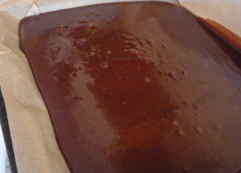 Pour the mixture into the lined baking tray and place in the centre of the pre-heated oven for 25 minutes.