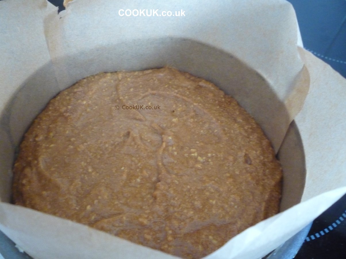 Add the remaining ingredients for the cake (not for the filling / topping) into the food processor and whizz them round until well mixed. This will take thirty seconds or so. Add the chopped walnuts and mix for about ten more seconds.