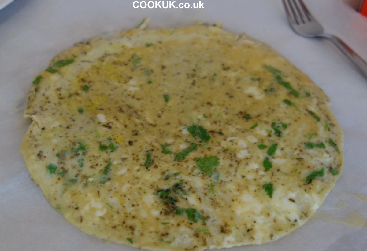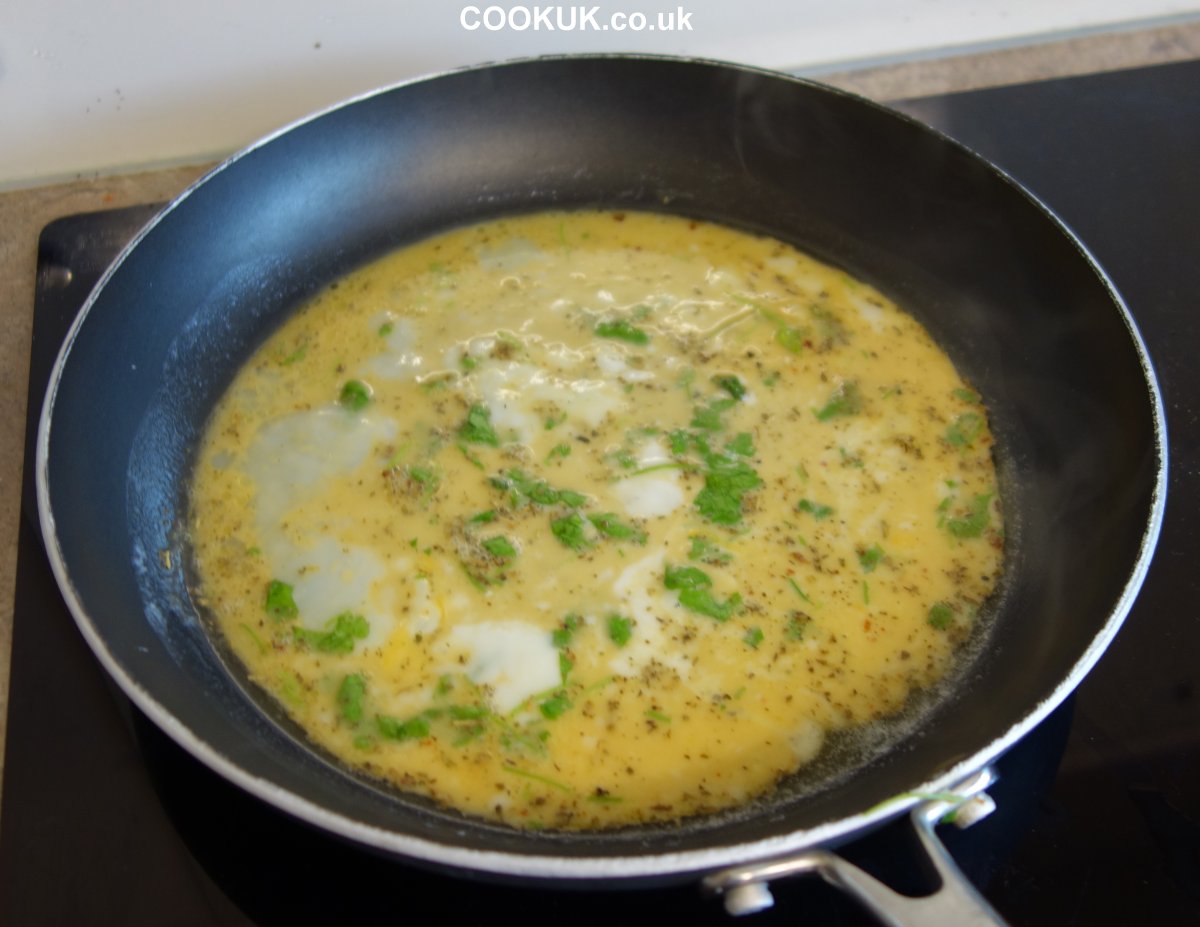 Pour roughly a third of the egg mixture into the frying pan and cook for two to three minutes until the egg has set, don't stir. Slide out the thin omelette onto a plate.