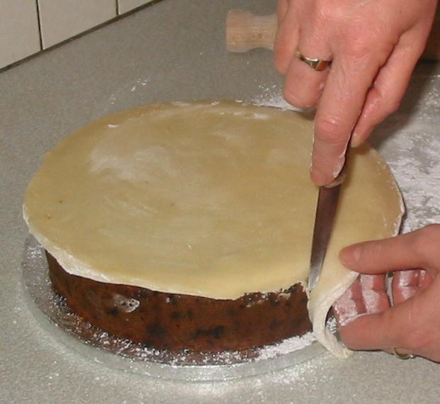 Trim off any excess marzipan with a knife and firm down the edge of the marzipan.
