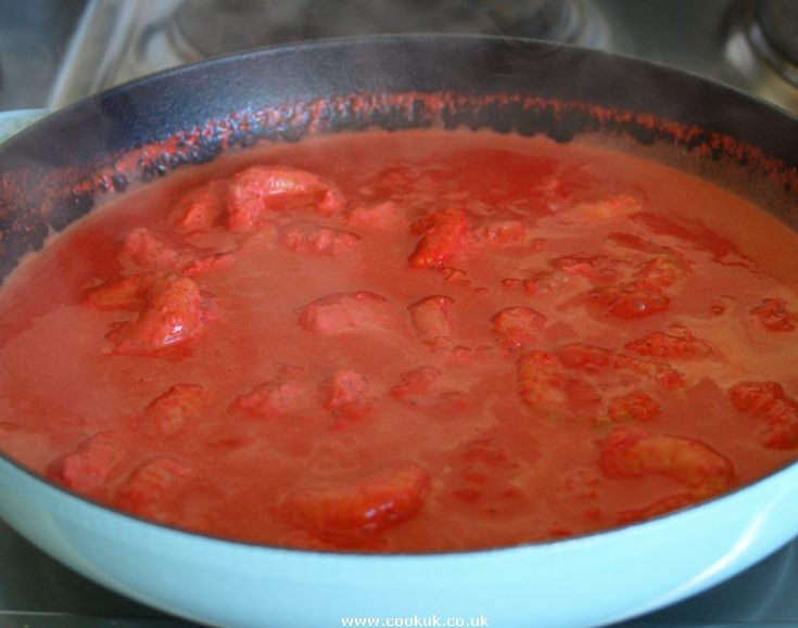 frequently and cook for three minutes. Add the prawns. If they are frozen pre-cooked