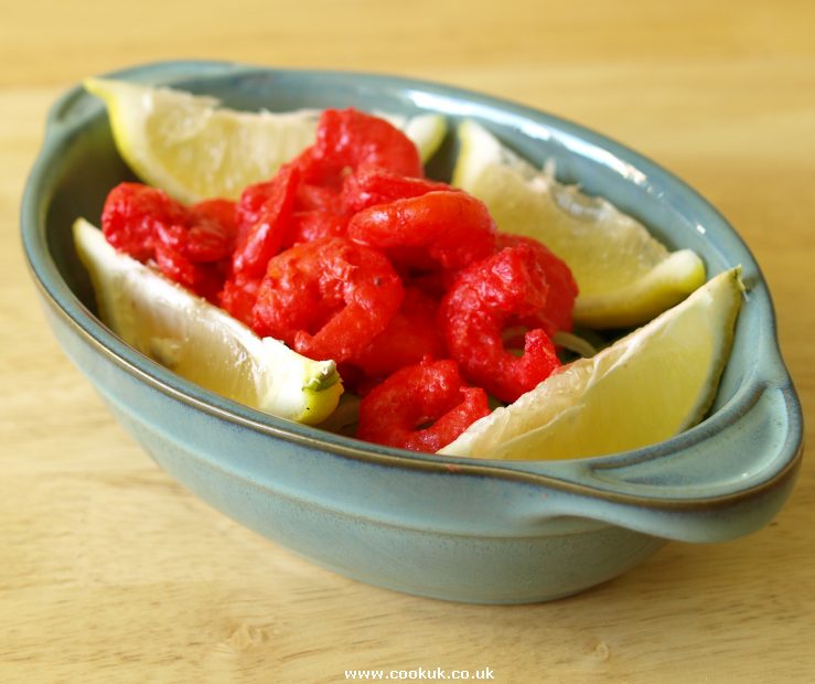This prawn dish is designed to be served as a starter. Remove the prawns