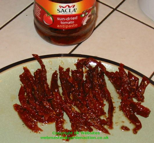 Slice the sun dried tomatoes into strips (see recipe picture)