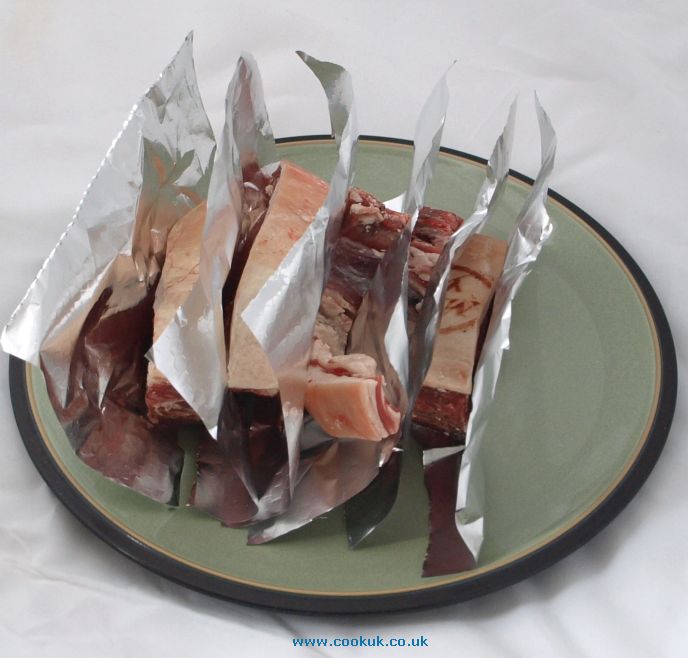 Cut kitchen foil large enough so that it will cover the meat two