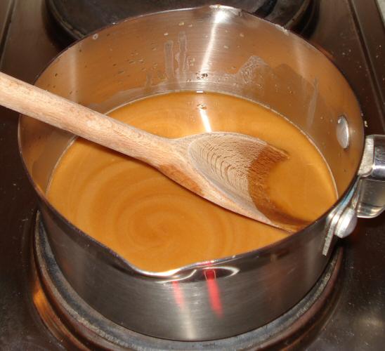 the boil, stirring all the time to stop it burning. Simmer gently