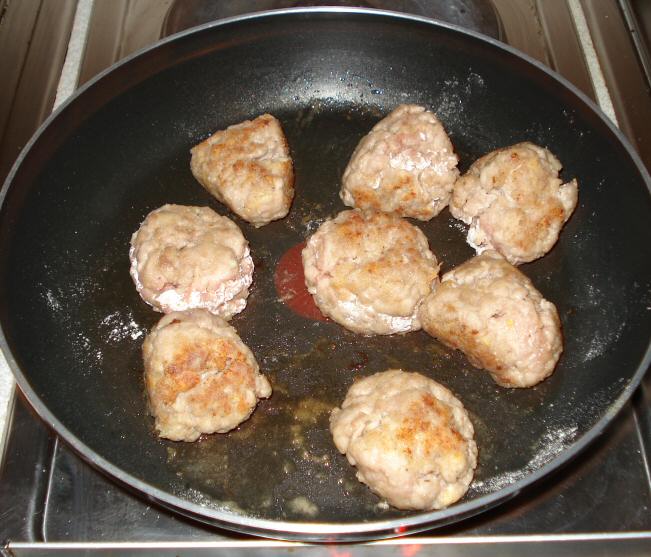 Add the oil to the frying pan then place the pork balls in and gently fry
